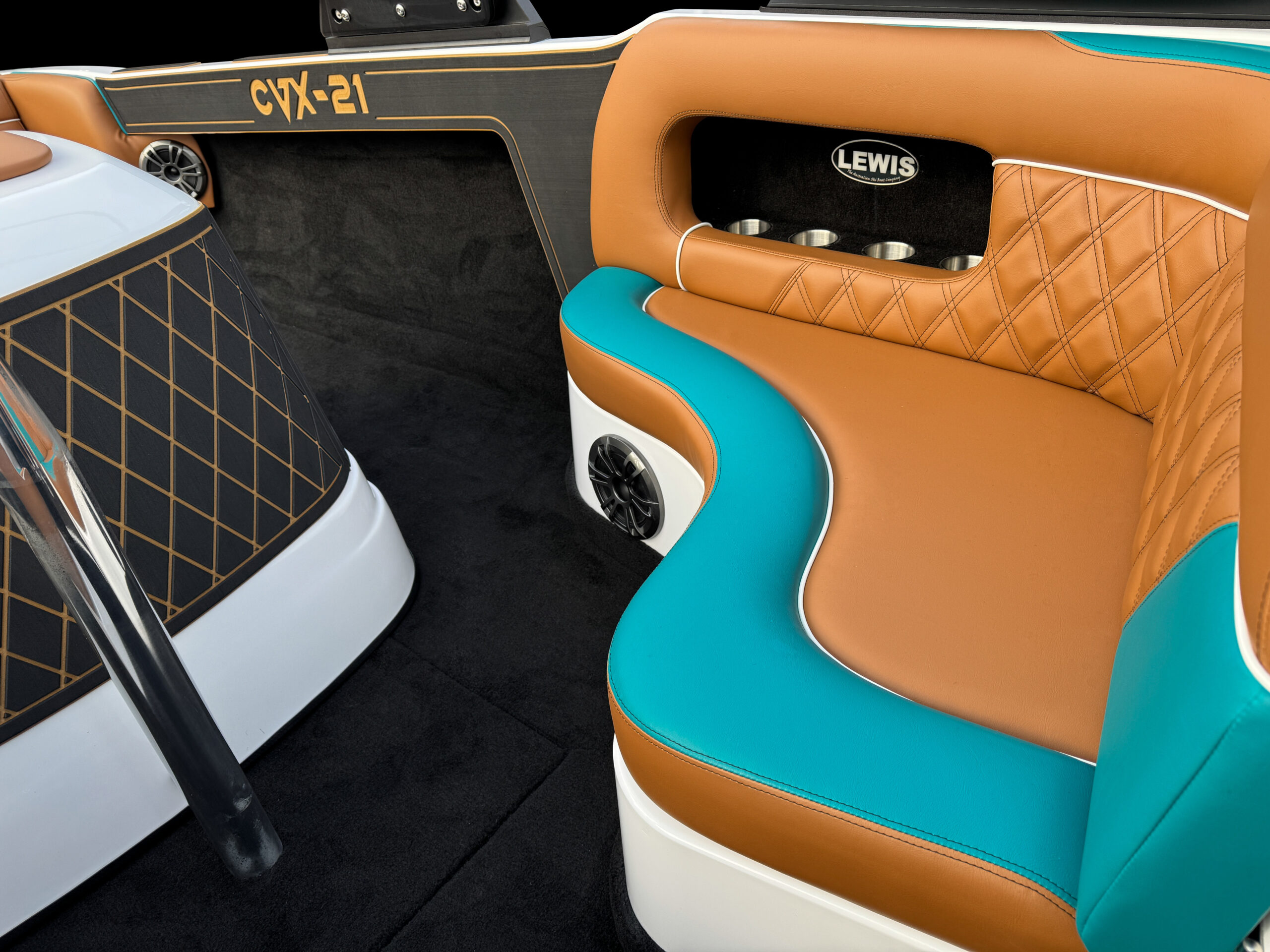 Finishing touches include premium plush carpet and ultra-modern Trideck accents throughout, giving the CVX-21 a sleek, stylish, and low-maintenance finish that makes it the perfect multi-sport towboat.
